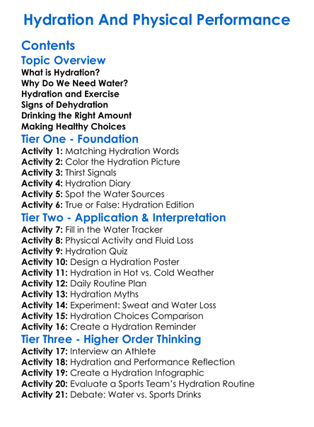 Hydration And Physical Performance Worksheet Activity Booklet