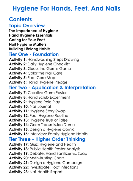 Hygiene For Hands Feet And Nails Worksheet Activity Booklet