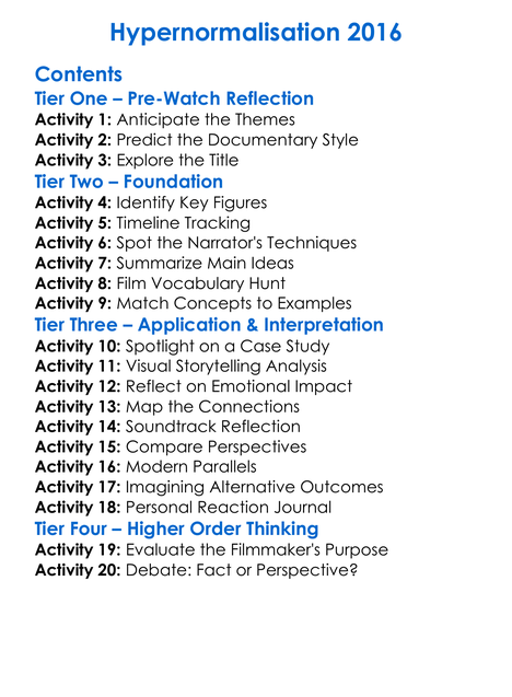 Hypernormalisation 2016 Worksheet Activity Booklet