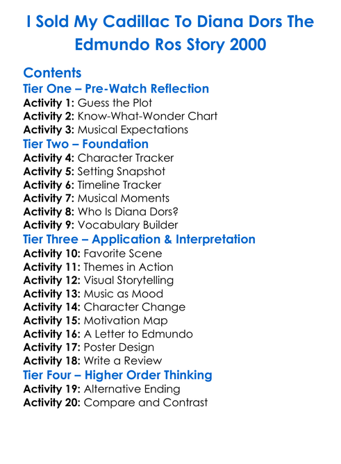 I Sold My Cadillac To Diana Dors The Edmundo Ros Story 2000 Worksheet Activity Booklet