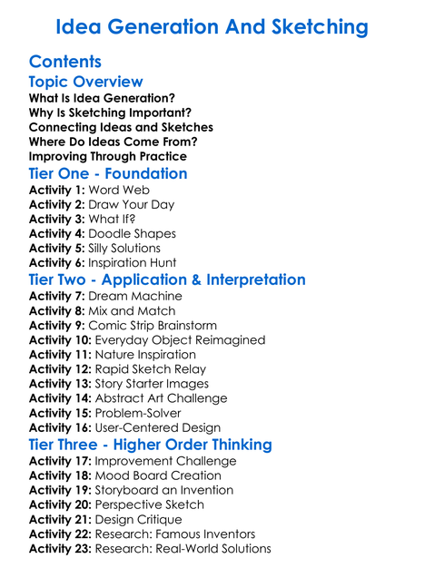 Idea Generation And Sketching Worksheet Activity Booklet