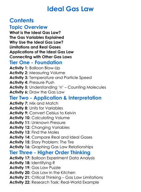 Ideal Gas Law Worksheet Activity Booklet