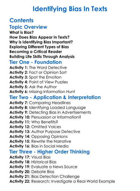 Identifying Bias In Texts Worksheet Activity Booklet