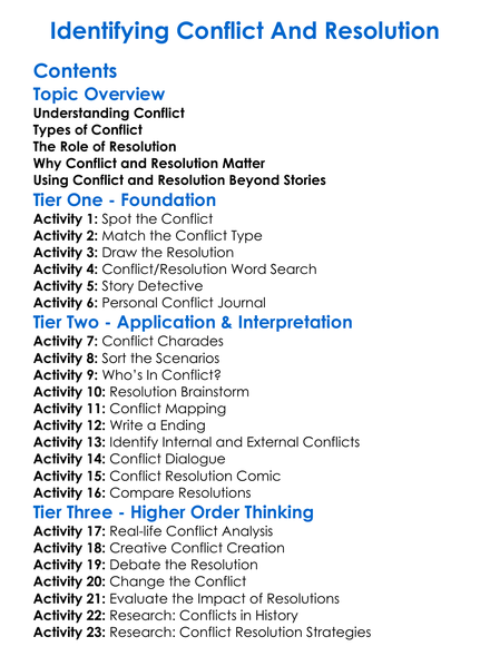 Identifying Conflict And Resolution Worksheet Activity Booklet