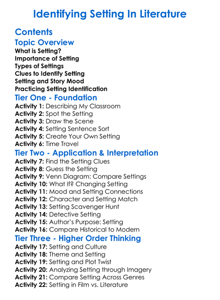 Identifying Setting In Literature Worksheet Activity Booklet