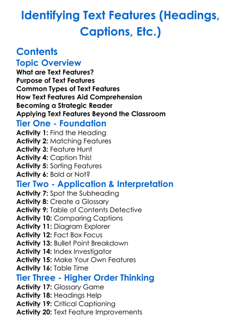 Identifying Text Features Headings Captions Etc Worksheet Activity Booklet