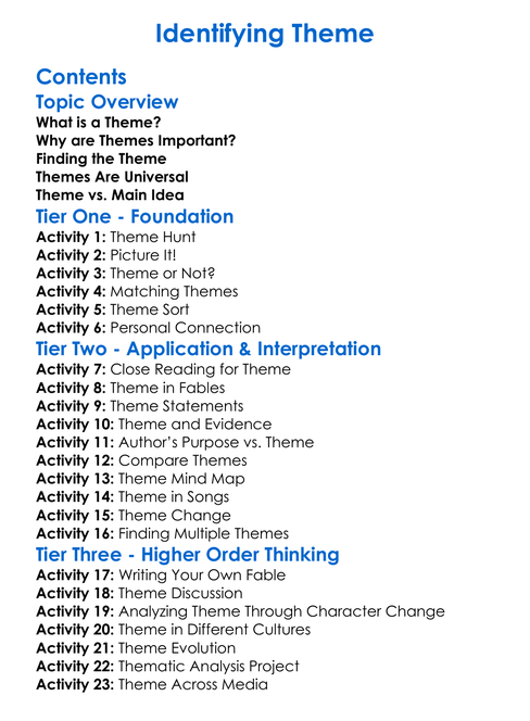 Identifying Theme Worksheet Activity Booklet