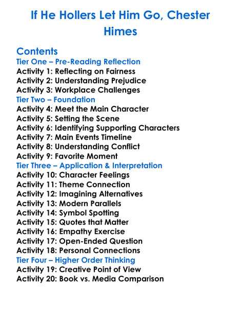 If He Hollers Let Him Go Chester Himes Worksheet Activity Booklet