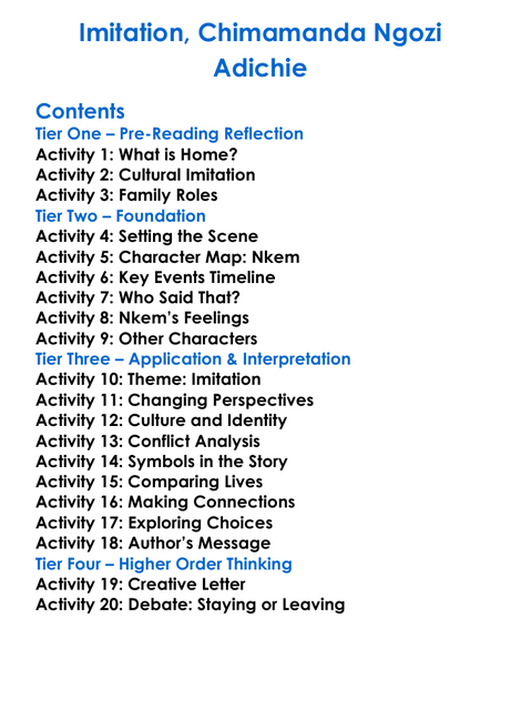 Imitation Chimamanda Ngozi Adichie Worksheet Activity Booklet