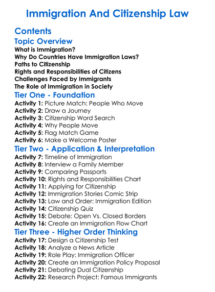 Immigration And Citizenship Law Worksheet Activity Booklet