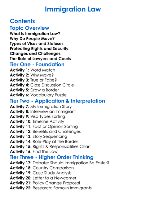 Immigration Law Worksheet Activity Booklet