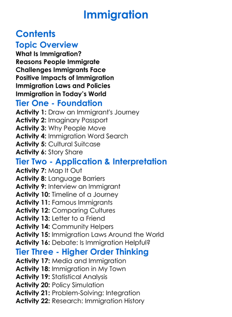 Immigration Worksheet Activity Booklet