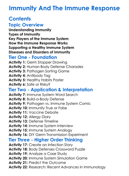 Immunity And The Immune Response Worksheet Activity Booklet