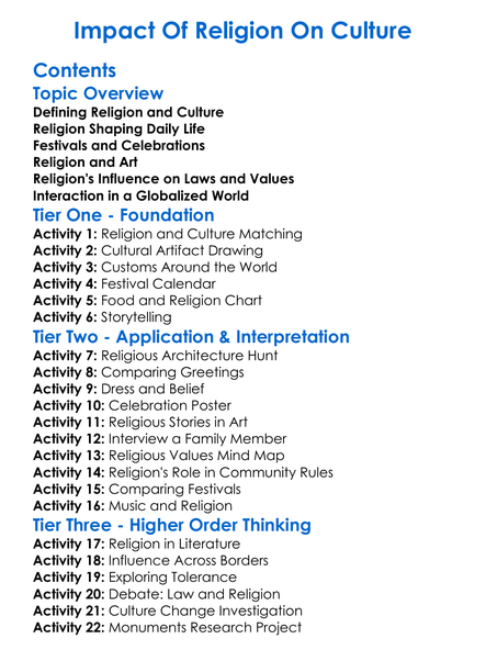 Impact Of Religion On Culture Worksheet Activity Booklet