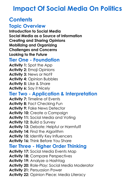 Impact Of Social Media On Politics Worksheet Activity Booklet