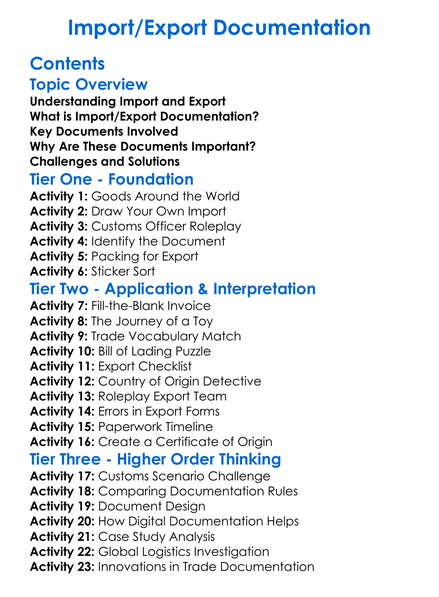 Importexport Documentation Worksheet Activity Booklet