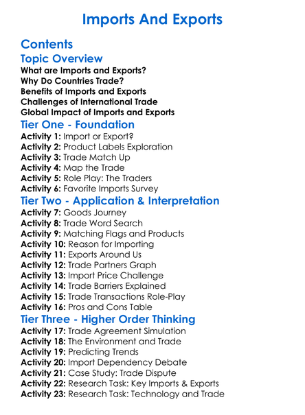 Imports And Exports Worksheet Activity Booklet