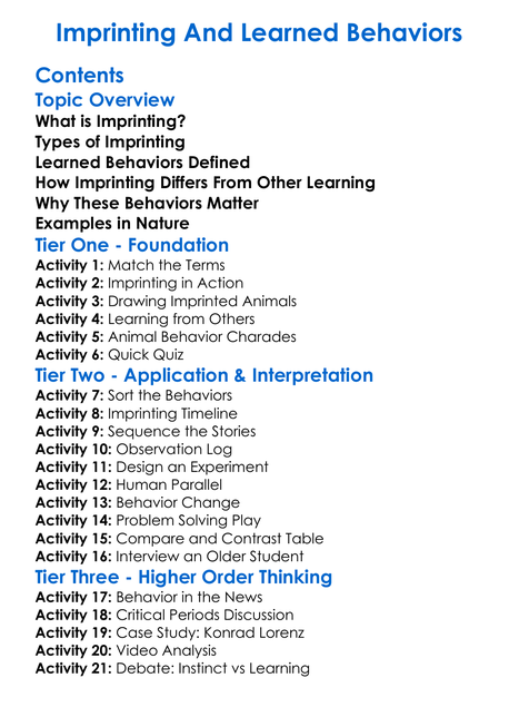 Imprinting And Learned Behaviors Worksheet Activity Booklet