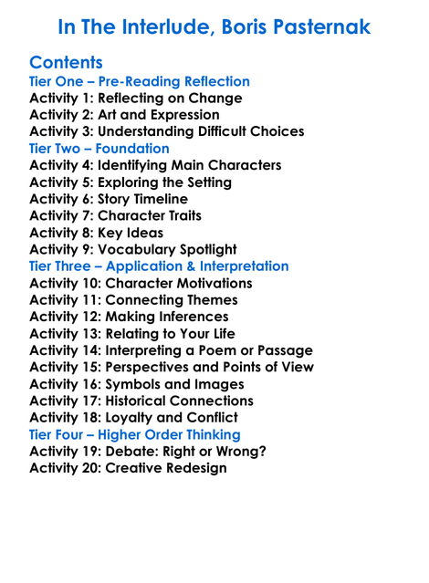 In The Interlude Boris Pasternak Worksheet Activity Booklet