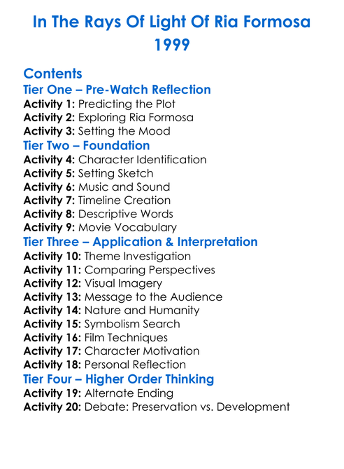 In The Rays Of Light Of Ria Formosa 1999 Worksheet Activity Booklet
