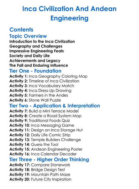 Inca Civilization And Andean Engineering Worksheet Activity Booklet