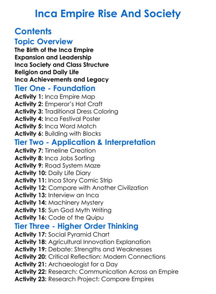 Inca Empire Rise And Society Worksheet Activity Booklet