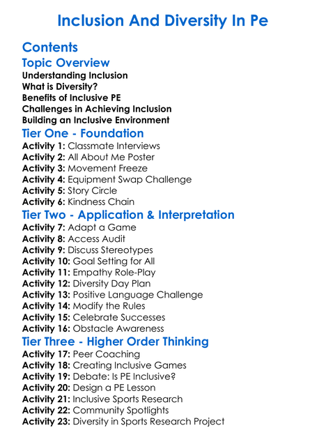 Inclusion And Diversity In Pe Worksheet Activity Booklet