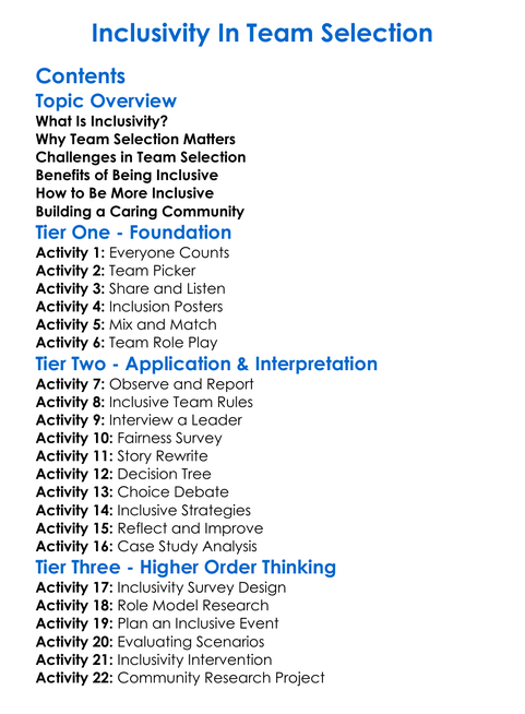 Inclusivity In Team Selection Worksheet Activity Booklet