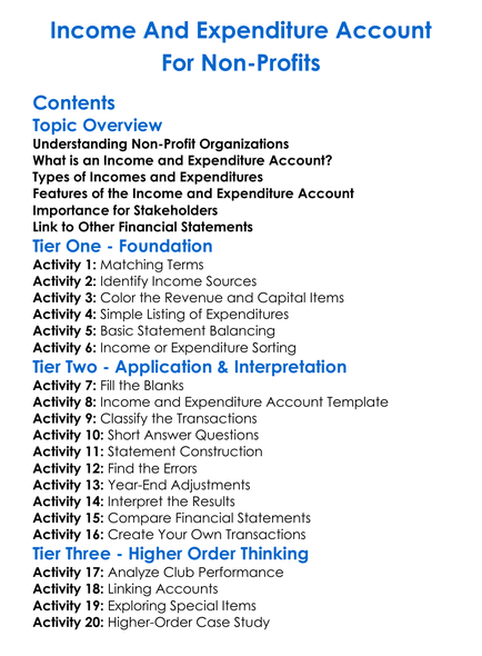 Income And Expenditure Account For Non-Profits Worksheet Activity Booklet
