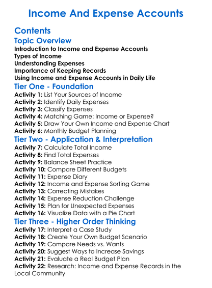 Income And Expense Accounts Worksheet Activity Booklet