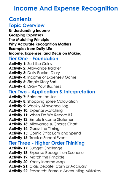 Income And Expense Recognition Worksheet Activity Booklet