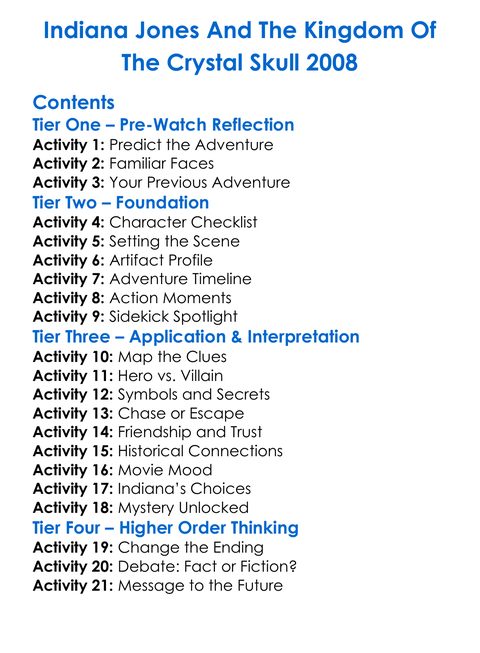 Indiana Jones And The Kingdom Of The Crystal Skull 2008 Worksheet Activity Booklet