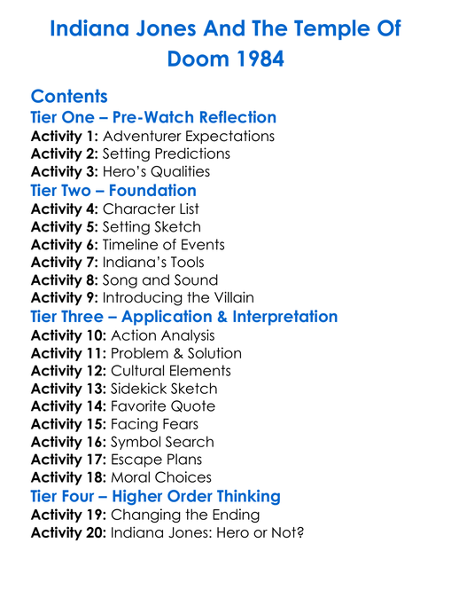 Indiana Jones And The Temple Of Doom 1984 Worksheet Activity Booklet