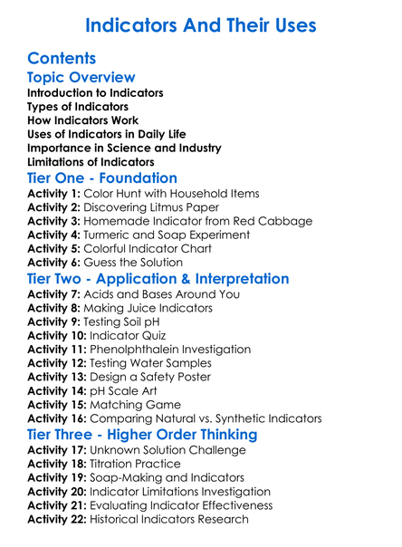 Indicators And Their Uses Worksheet Activity Booklet