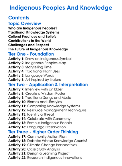 Indigenous Peoples And Knowledge Worksheet Activity Booklet