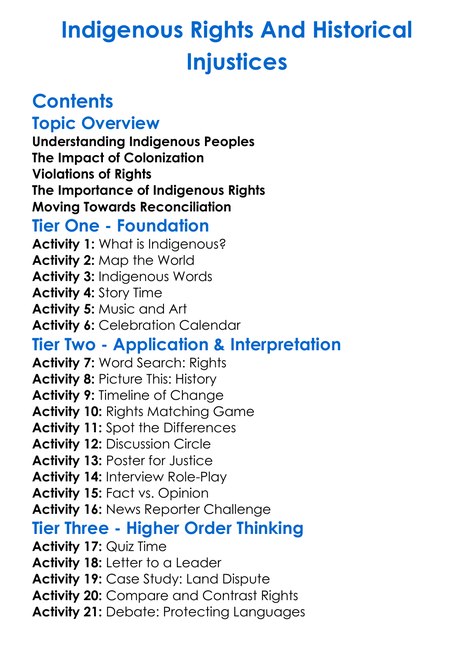 Indigenous Rights And Historical Injustices Worksheet Activity Booklet