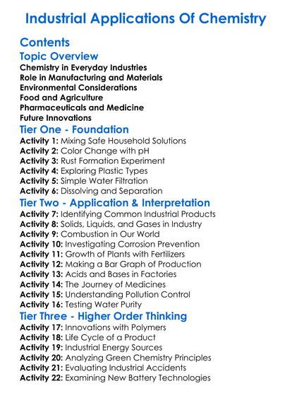 Industrial Applications Of Chemistry Worksheet Activity Booklet