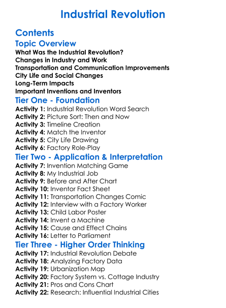 Industrial Revolution Worksheet Activity Booklet