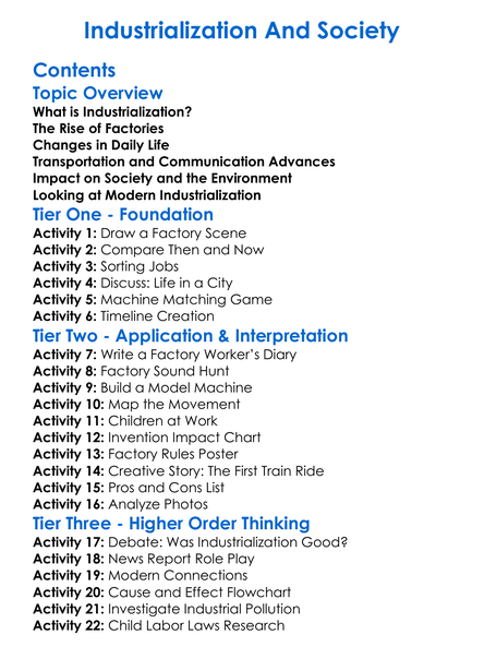 Industrialization And Society Worksheet Activity Booklet