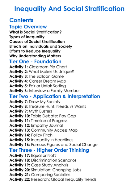Inequality And Social Stratification Worksheet Activity Booklet