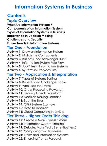Information Systems In Business Worksheet Activity Booklet