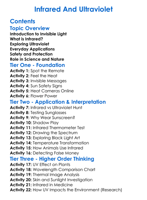 Infrared And Ultraviolet Worksheet Activity Booklet
