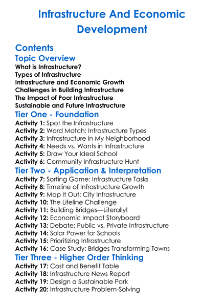 Infrastructure And Economic Development Worksheet Activity Booklet