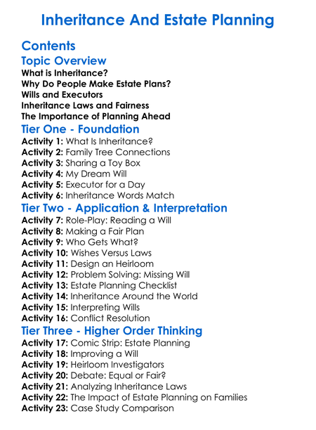Inheritance And Estate Planning Worksheet Activity Booklet