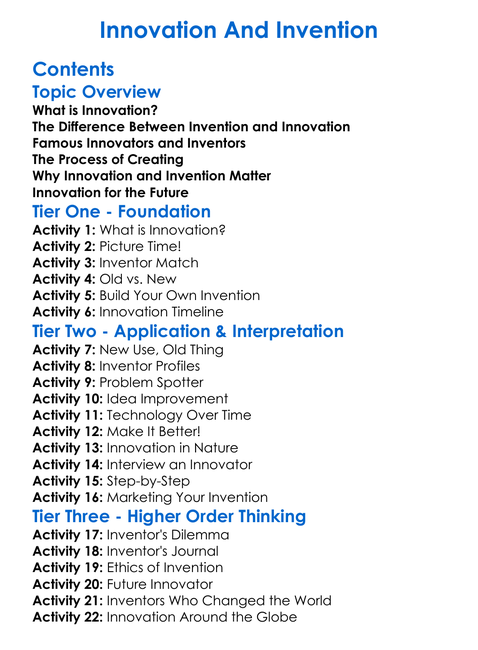 Innovation And Invention Worksheet Activity Booklet