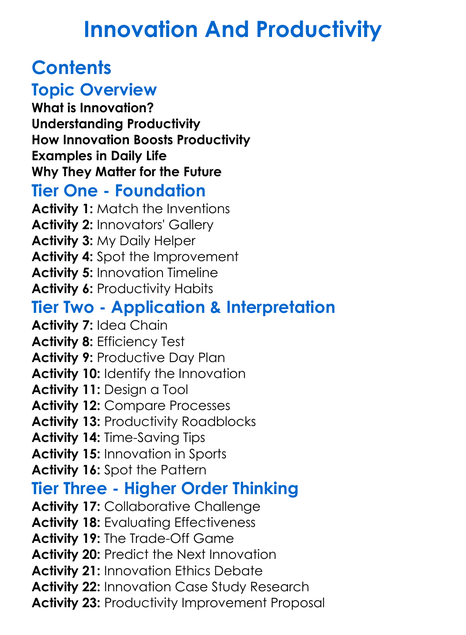 Innovation And Productivity Worksheet Activity Booklet