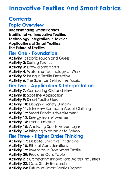 Innovative Textiles And Smart Fabrics Worksheet Activity Booklet