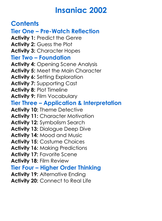 Insaniac 2002 Worksheet Activity Booklet