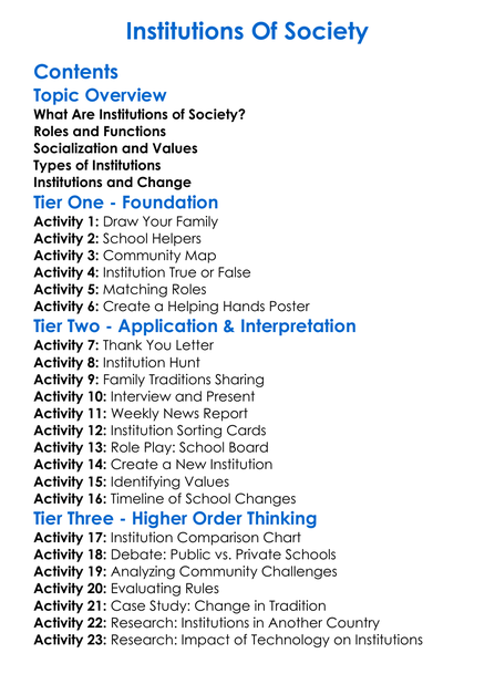Institutions Of Society Worksheet Activity Booklet