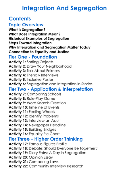 Integration And Segregation Worksheet Activity Booklet